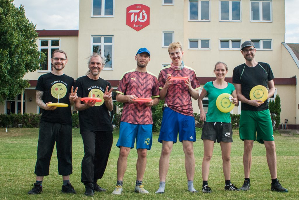 Das übende Team bekommt Angriffe serviert (wie immer bei Übungen ruhig nicht ganz so fiese Angriffe, also zum Beispiel lieber zwei Rückhandwürfe und ohne dass beide Scheiben extrem nah beieinander liegen).